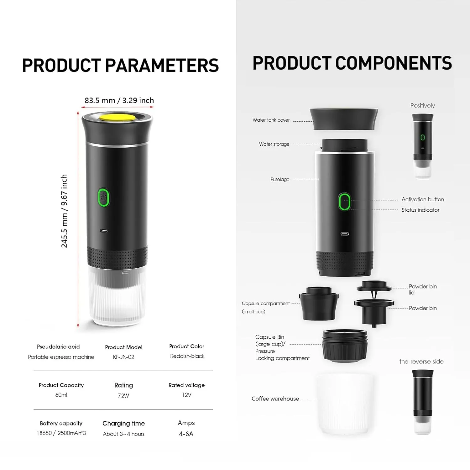 - مخزن آب 60ml و فنجان شفاف 150ml برای مشاهده روند عصارهگیری
