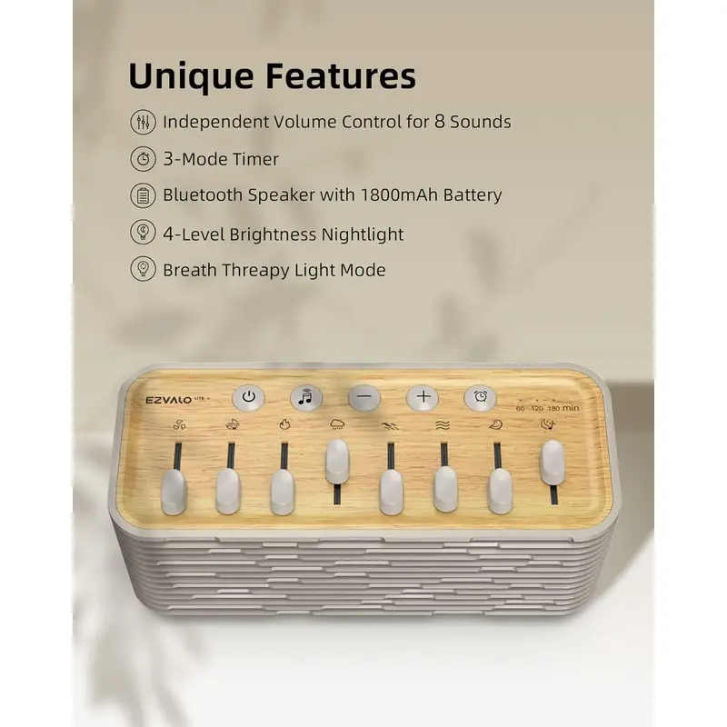 اسپیکر و صدای سفید EZVALO مدل SM2LB یک گجت چندکاره برای ایجاد محیطی آرامشبخش و شخصیسازیشده است. این دستگاه با بیش از 255 ترکیب صوتی قابل تنظیم، اسپیکر بلوتوثی استریو، جک هدفون 3.5 میلیمتری و چراغ خواب LED با 4 سطح روشنایی و حالت تنفس، تجربهای کامل برای خواب بهتر، مدیتیشن و کاهش استرس فراهم میکند. باتری داخلی 1800mAh با زمان کارکرد تا 10 ساعت، تایمر هوشمند 60، 120 و 180 دقیقه و طراحی جمعوجور، این محصول را به همراهی مطمئن برای آرامش روزانه و شبانه تبدیل کرده است. مناسب برای بزرگسالان و کودکان، این اسپیکر محیطی آرام و دلنشین برای تمرکز و استراحت ایجاد میکند.