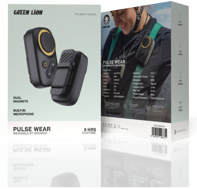 اسپیکر پوشیدنی گرین لاین مدل PULSE WEAR WEARABLE با طراحی سبک، صدای قدرتمند و مقاومت بالا، انتخابی هوشمندانه برای سبک زندگی مدرن و پرانرژی شماست.