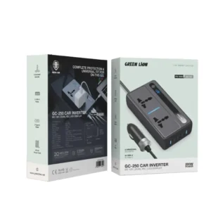 اینورتر خودرو گرین لاین مدل GC-250 با طراحی فشرده، توان بالا، شارژ سریع و ایمنی کامل، انتخابی عالی برای کسانی است که به برق پایدار و قابل حمل در خودرو نیاز دارند. این دستگاه، همراهی مطمئن برای سفرهای جادهای، کمپینگ یا استفاده روزمره در خودرو است.