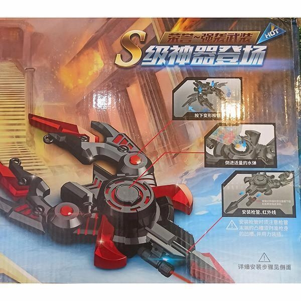 | اقلام همراه | چراغ لیزری، ۱ بسته تیر آماده، ۲ بسته تیر خام، کابل USB، باتری، عینک، پیچگوشتی |