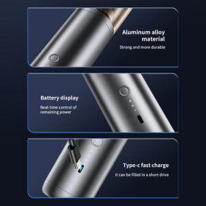 این محصول با بدنهای مقاوم از آلیاژ روی، ABS و پلیکربنات، هم سبک است و هم بادوام. موتور Brushless با سرعت ۹۸۰۰۰ دور در دقیقه و توان ۱۰۰ وات، قدرت مکشی بالا را بدون افت عملکرد در طول استفاده فراهم میکند. باتری ۶۰۰۰ میلیآمپر با شارژ سریع Type-C نیز تا ۳۰ دقیقه استفاده مداوم را ممکن میسازد.