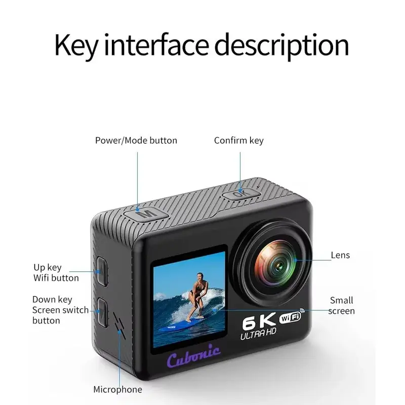 ویژگیهای برجسته دوربین ورزشی اکشن کمرا 6K با صفحه لمسی: