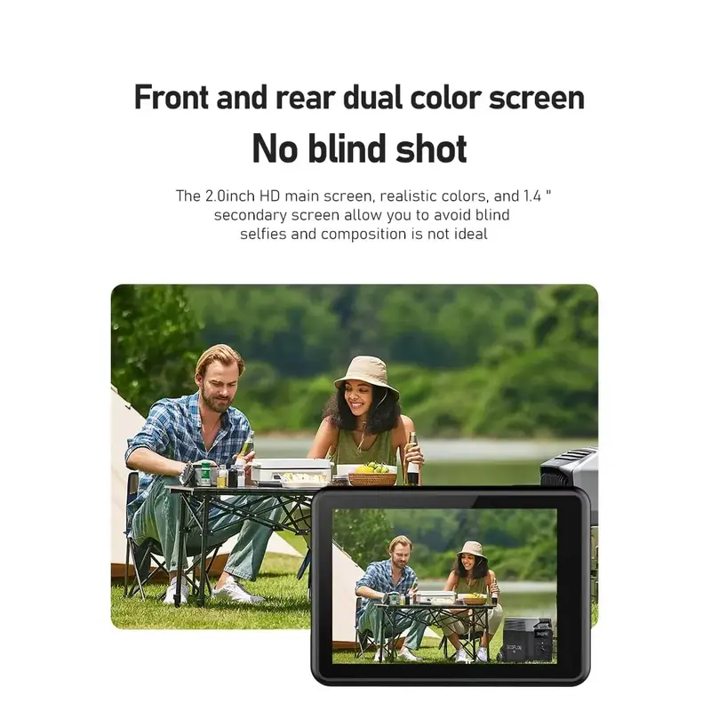 - دو نمایشگر لمسی رنگی: 2.0 اینچ پشت و 1.3 اینچ جلو برای کادرگیری سریع و سلفی