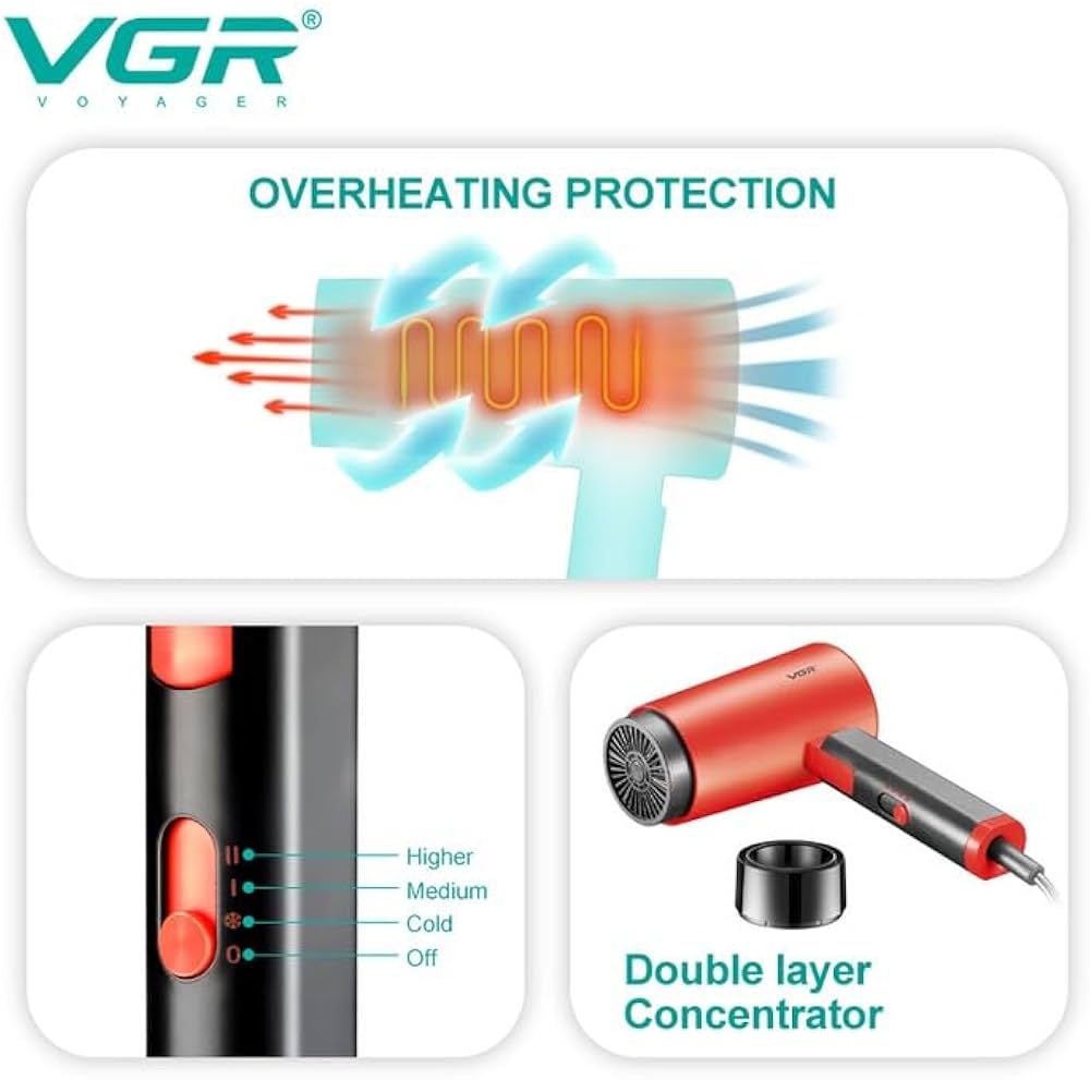 ویژگیهای برجسته سشوار مسافرتی وی جی آر مدل V-426