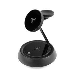 Hiska HR-13 Wireless Chargerتصور کن فقط با یک پایهی شیک و جمعوجور، هم گوشیت شارژ بشه، هم ساعت هوشمندت و هم هندزفریت—اونم همزمان، بیسیم و با سرعت بالا! شارژر بی سیم هیسکا مدل HR-13، مخصوص کسانیه که به نظم، زیبایی و عملکرد اهمیت میدن؛ یه پلتفرم شارژ ۳ در ۱ با طراحی مینیمال، نور ملایم شبانه و شارژ تطبیقی برای انواع دستگاههای مجهز به Qi.