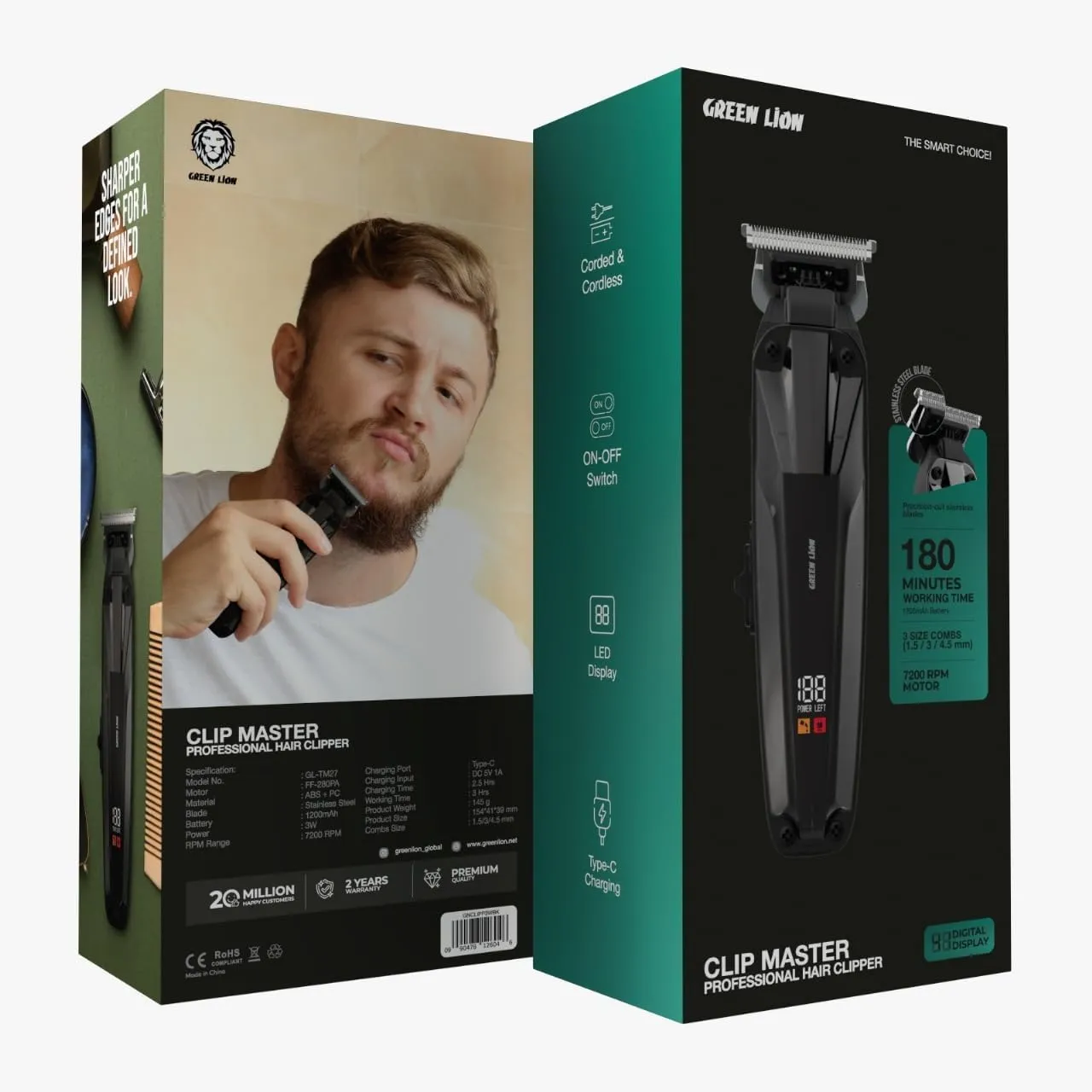 تیغههای استیل ضدزنگ با کیفیت بالا، اصلاحی تمیز و ایمن را تضمین میکنند و با شانههای قابل تنظیم در اندازههای ۱.۵، ۳ و ۴.۵ میلیمتر، امکان مدلسازی متنوع برای انواع مو فراهم است. باتری ۱۲۰۰ میلیآمپری با شارژ سریع Type-C تا ۳ ساعت استفاده مداوم را پشتیبانی میکند و نمایشگر LED میزان شارژ را لحظهبهلحظه نمایش میدهد. طراحی ارگونومیک بدنه از جنس ABS + PC، کلید روشن/خاموش آسان و قابلیت استفاده بهصورت سیمی و بیسیم، ماشین اصلاح حرفهای گرین لاین مدل Clip Master را به همراهی حرفهای برای آرایشگران و کاربران خانگی تبدیل کرده است.