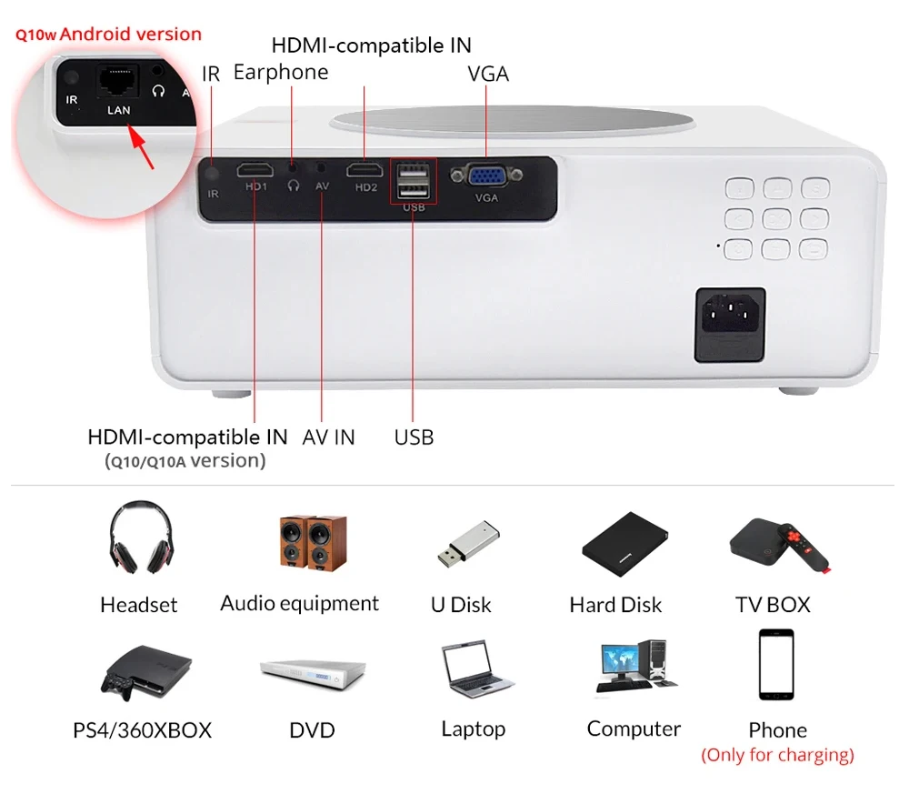 ویدئو پروژکتور توینگر مدل Q10 Android
