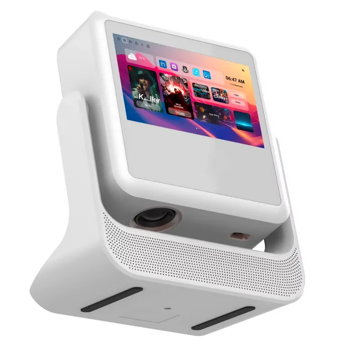 ویدئو پروژکتور مانیتور دار مدل LONNST C3 ترکیبی هوشمند از یک تبلت لمسی ۸ اینچی و پروژکتور داخلی است. این محصول به شما امکان میدهد بدون نیاز به تجهیزات جداگانه، هم محتوای آموزشی را نمایش دهید و هم فیلم و سریال تماشا کنید. طراحی چرخشی PTZ زاویه دید را تا ۱۸۰ درجه تغییر میدهد و تصویر را روی هر سطح صاف مثل دیوار یا سقف به نمایش میگذارد.