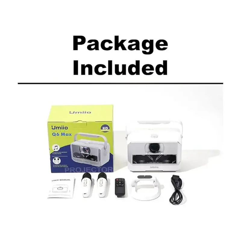 Q6 Max Smart Projector with Dual Wireless Karaoke Microphonesویدئو پروژکتور Umiio مدل Q6 max، یک مرکز سرگرمی، آموزش و ارتباطه. با امکاناتی مثل پخش 4K، سیستم عامل اندروید، اسپیکر داخلی، میکروفونهای بیسیم و اتصال بیسیم، این پروژکتور همهچیز رو در خودش داره. اگه دنبال یه انتخاب هوشمندانه برای خونه یا محل کار هستی، Q6 Max دقیقاً همون چیزیه که باید داشته باشی.