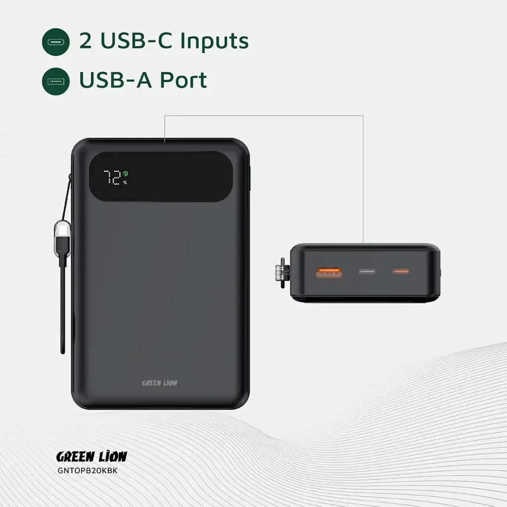 - دو ورودی USB-C برای شارژ سریعتر پاوربانک
