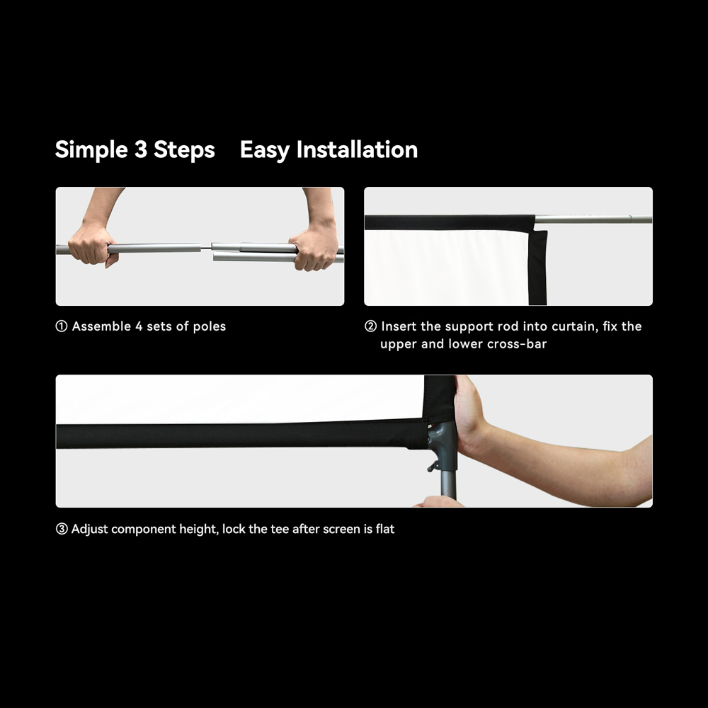 - مثال: یک خانواده میتواند در تعطیلات آخر هفته، با نصب سریع این پرده در باغ یا تراس، فیلمی خانوادگی را با کیفیت سینمایی تماشا کند