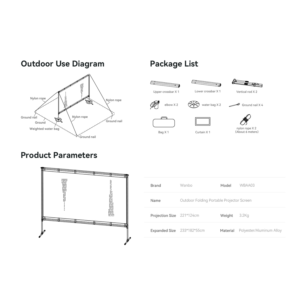 پرده پروژکتور تاشو و پایهدار wanbo فقط یک ابزار نمایش نیست—بلکه پلی است بین فناوری و لذت تماشا در هر محیطی. با طراحی مقاوم، کیفیت تصویر بالا و نصب آسان، این محصول انتخابی عالی برای کسانی است که به دنبال تجربهای متفاوت، قابل حمل و حرفهای هستند.